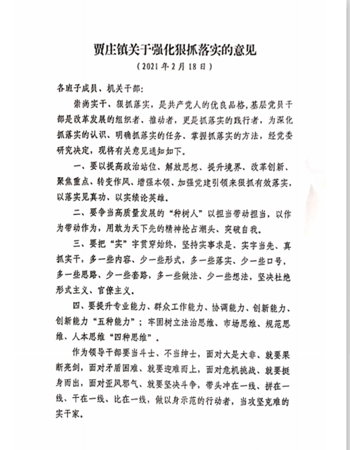 信心在,勇氣就在;實干在,成功就在。在縣委、縣府的堅強領導下,賈莊鎮(zhèn)上下將擔負使命拼命干、精準發(fā)力加油干、緊盯項目埋頭干、勇于擔當帶頭干、聚精會神合力干,奮力開創(chuàng)賈莊經濟社會高質量發(fā)展的新局面。